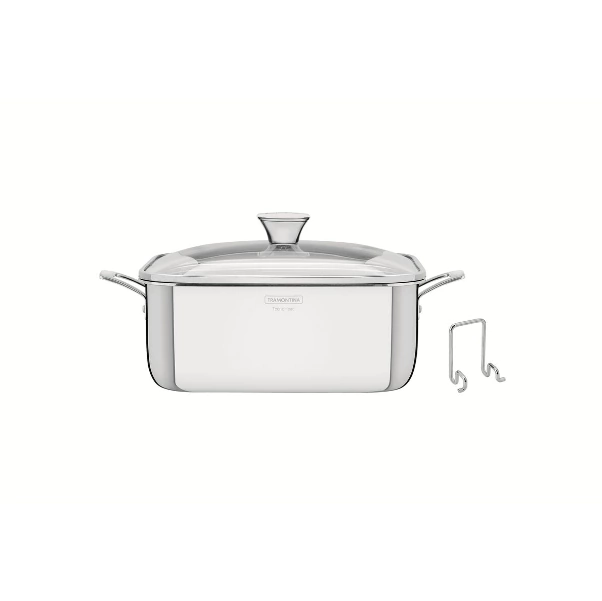 Seja uma macarronada ou aquela receita especial de risoto, eles ficam muito mais especiais se forem preparados na Caçarola Tramontina Grano Quadrada em Aço Inox com Suporte para Tampa Corpo triplo com Alças e Tampa de Vidro. Perfeita para uso diário, ela lhe garante resistência e durabilidade, pois é totalmente produzida em aço inox com corpo triplo. Ela é muito versátil e pode ser utilizada em diversos tipos de fogão: à gás, elétrico, vitrocerâmico e indução; e em todos cozinhando os alimentos de maneira uniforme. Ela vem com tampa de vidro com saída de vapor, é fácil de limpar e ainda pode ser lavada na máquina de lavar louças. Tramontina e você, a combinação perfeita para receitas de sucesso! Acompanha suporte para tampa.