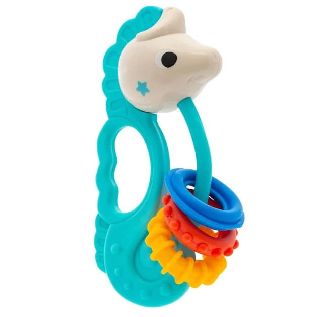 Para morder, brincar e chacoalhar, o Chocalho com Mordedor da Buba vai massagear a gengiva do bebê, além de estimular seus sentidos. É colorido, possui diferentes texturas e tem o tamanho e formato ideal para as mãozinhas pequenas.