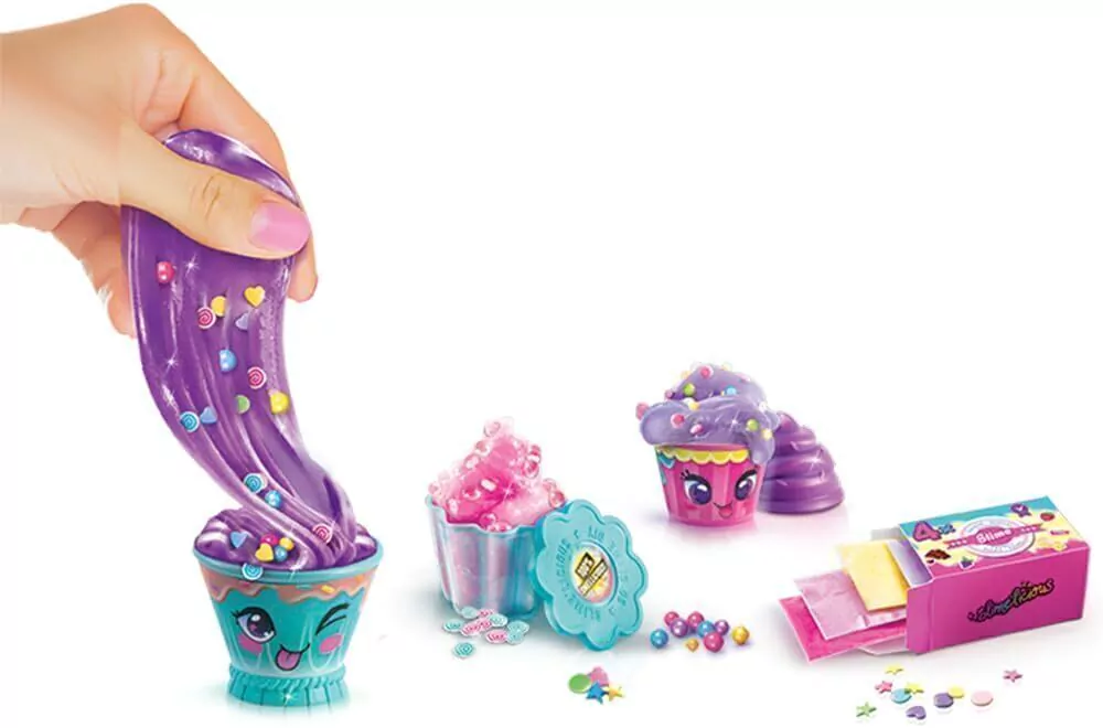 Faça você mesmo! A FUN Frasqueira Slimedelicious é charmosa e seu formato de casquinha de sorvete é ideal para levar seu kit slime para todos os lugares. Contém 2 mini cupcake shakers para misturar, 2 caixas de slime, 8 sachês perfumados, 4 pingentes surpresa e 5 itens para decoração. Basta adicionar água ao pó e terá seu slime favorito. Não tóxico. Recomendação: 6+