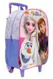 Mala com Rodas 16 Frozen X - 10600 - Em tamanho 16", é produzida em poliéster resistente e estampado. Painel frontal PVC Cristal - Compartimento principal amplo, zíper com puxadores simples . Carrinho em metal com travas.